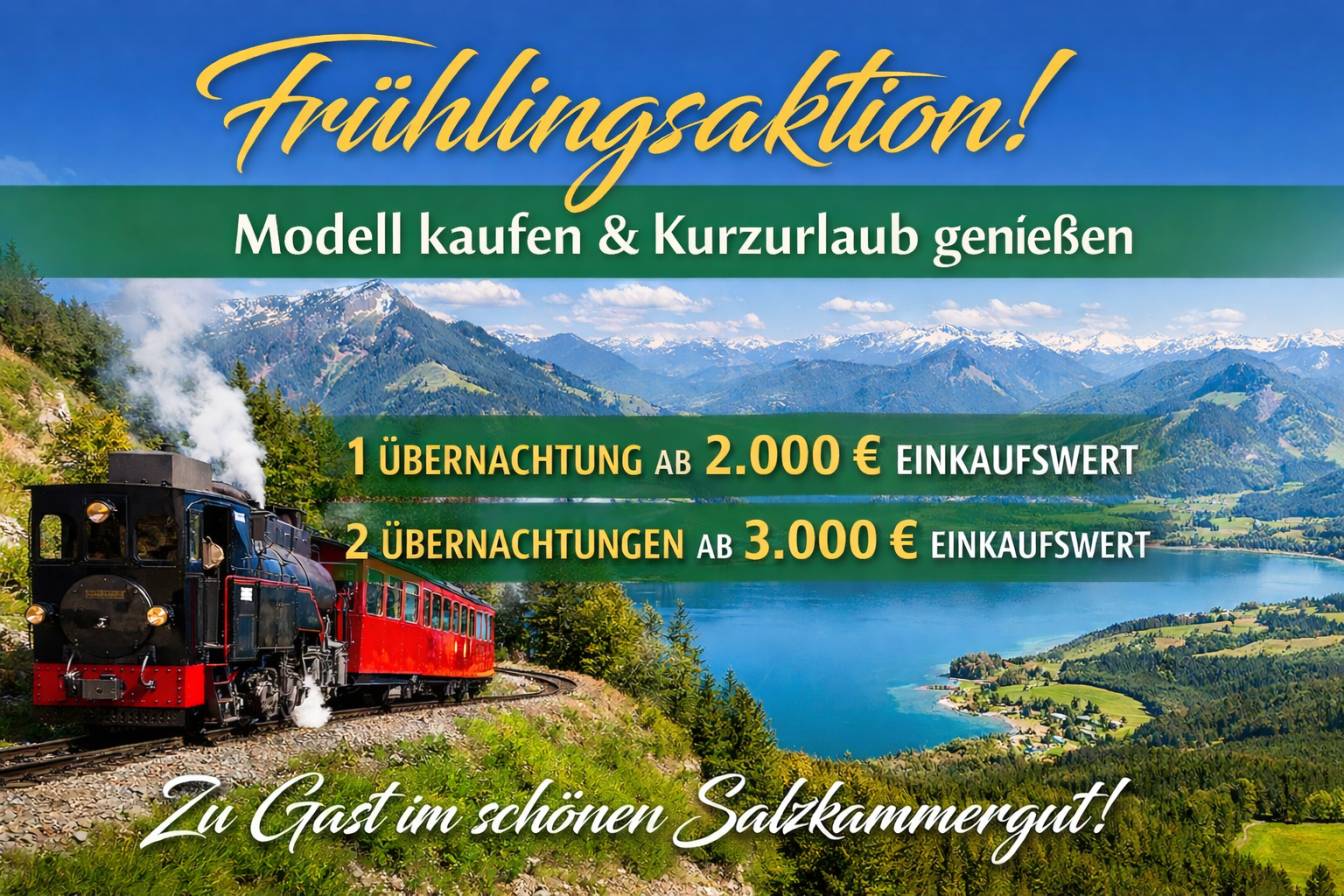Je nach Einkaufswert schenken wir Ihnen eine oder zwei Übernachtungen für zwei Personen in unserer Region. Im Salzkammergut, einer Landschaft, die wie geschaffen scheint für eine kleine Auszeit.